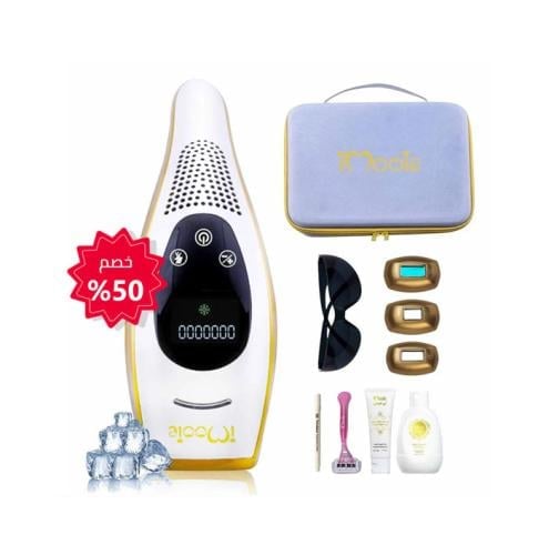 يعمل بتقنية الضوء النبضي المكثف (IPL) لإزالة الشعر من الجذور بفعالية وبدون ألم، وعدد ومضات لا محدود لعمر